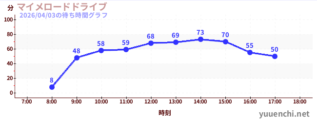 2026/04/03の待ち時間グラフ (マイメロードドライブ)