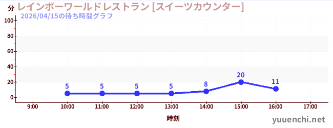 2026/04/15の待ち時間グラフ (レインボーワールドレストラン [スイーツカウンター])