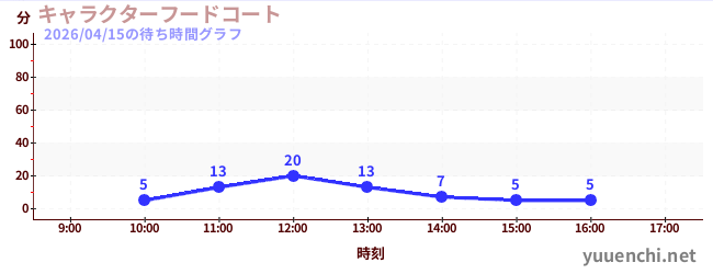 2026/04/15の待ち時間グラフ (キャラクターフードコート)