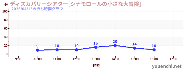 2026/04/15の待ち時間グラフ (ディスカバリーシアター[シナモロールの小さな大冒険])