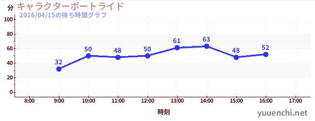 2026/04/15の待ち時間グラフ (キャラクターボートライド)