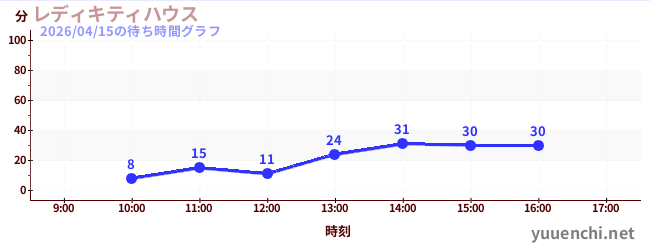 2026/04/15の待ち時間グラフ (レディキティハウス)