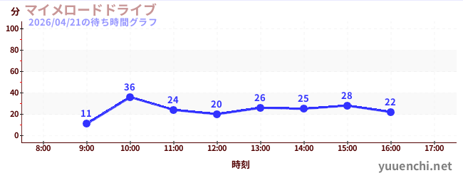 2026/04/21の待ち時間グラフ (マイメロードドライブ)