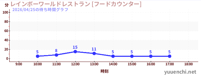 2026/04/25の待ち時間グラフ (レインボーワールドレストラン [フードカウンター])