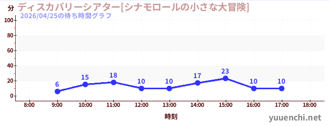 2026/04/25の待ち時間グラフ (ディスカバリーシアター[シナモロールの小さな大冒険])