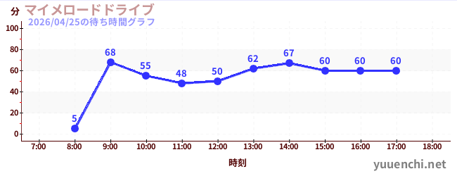 2026/04/25の待ち時間グラフ (マイメロードドライブ)