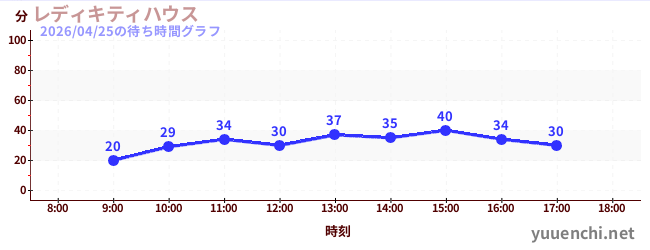 2026/04/25の待ち時間グラフ (レディキティハウス)