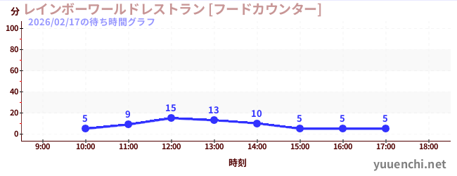 2026/02/17の待ち時間グラフ (レインボーワールドレストラン [フードカウンター])