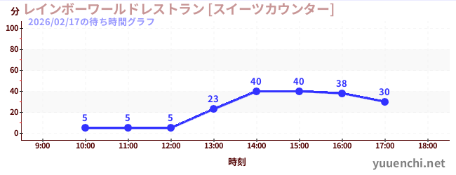 2026/02/17の待ち時間グラフ (レインボーワールドレストラン [スイーツカウンター])