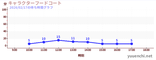 2026/02/17の待ち時間グラフ (キャラクターフードコート)