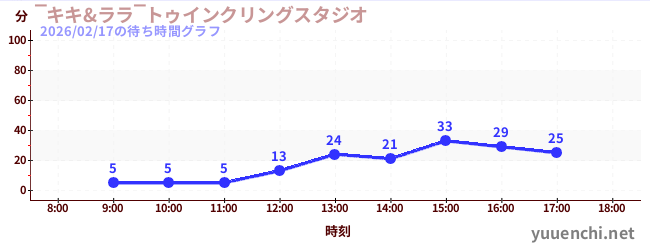 2026/02/17の待ち時間グラフ (‾キキ&ララ‾トゥインクリングスタジオ)