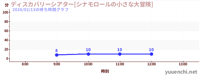 今日これまでの混雑グラフ (ディスカバリーシアター[シナモロールの小さな大冒険])
