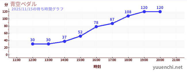2025/11/15の待ち時間グラフ (青空ペダル)