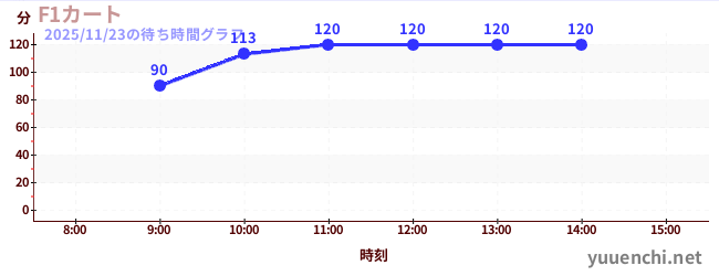 2025/11/23の待ち時間グラフ (もりもりサファリ ぼうけんカート)