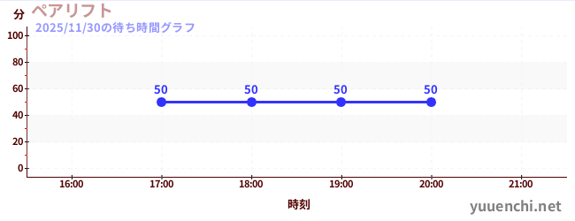 2025/11/30の待ち時間グラフ (ペアリフト)