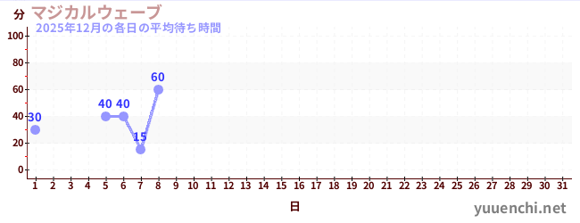 2025/12の一日平均待ち時間 (マジカルウェーブ)