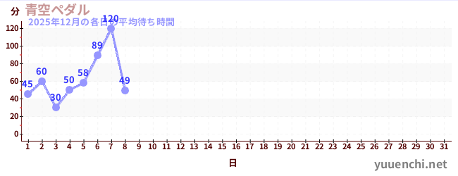 2025/12の一日平均待ち時間 (青空ペダル)