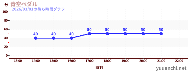 2026/03/01の待ち時間グラフ ホーム 待ち時間グラフ一覧 2026/03/01の待ち時間グラフ 画像提供:さがみ湖プレジャーフォレスト リアルタイム待ち時間 過去の混雑カレンダー 混雑予想カレンダー 今日の混雑情報 アトラクション一覧 待ち時間グラフ アトラクションランキング ある日の時間ごとグラフ ある月の日ごとグラフ ある年の月ごとグラフ 直近3週間グラフ ある年に日ごとグラフ 02/24 02/25 02/26 02/27 02/28 03/01 03/02 2026/03/01の待ち時間グラフ (青空ペダル) 2026/03/01の待ち時間グラフ (F1カート)
