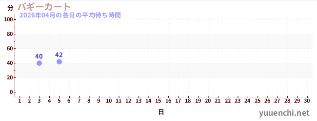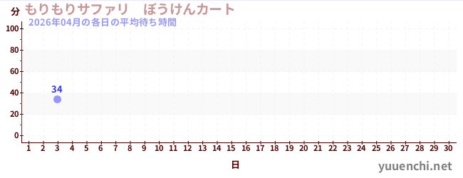 2026/04の一日平均待ち時間 (もりもりサファリ ぼうけんカート)