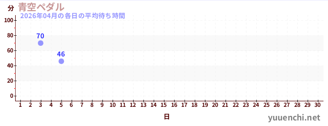 2026/04の一日平均待ち時間 (空飛ぶブランコ)