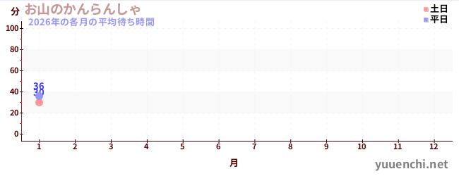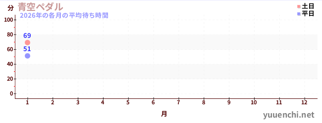 2026เวลารอโดยเฉลี่ยในแต่ละเดือนของปี (青空ペダル)