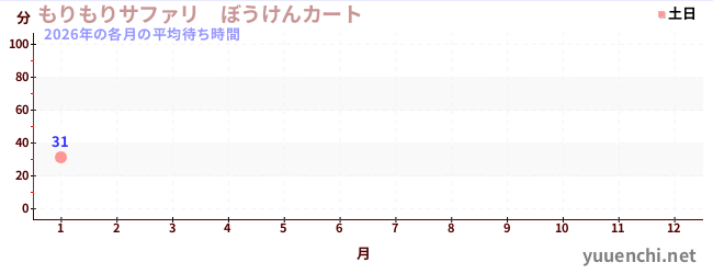 2026เวลารอโดยเฉลี่ยในแต่ละเดือนของปี (もりもりサファリ ぼうけんカート)