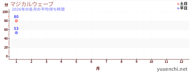 2026เวลารอโดยเฉลี่ยในแต่ละเดือนของปี (マジカルウェーブ)