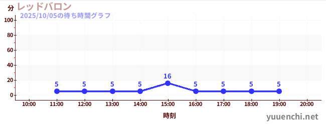 2025/10/05の待ち時間グラフ (レッドバロン)