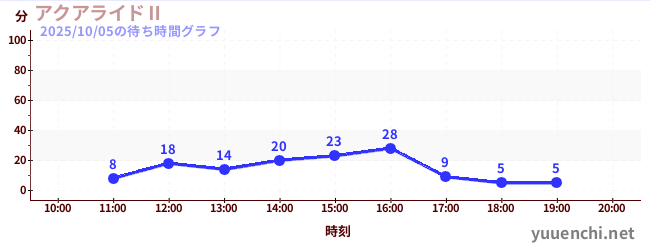 2025/10/05の待ち時間グラフ (アクアライドⅡ)