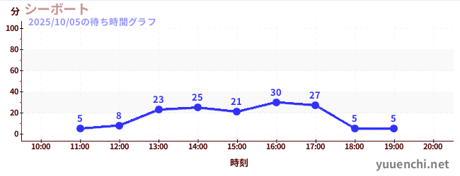 2025/10/05の待ち時間グラフ (シーボート)