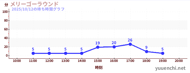 2025/10/12の待ち時間グラフ (メリーゴーラウンド)