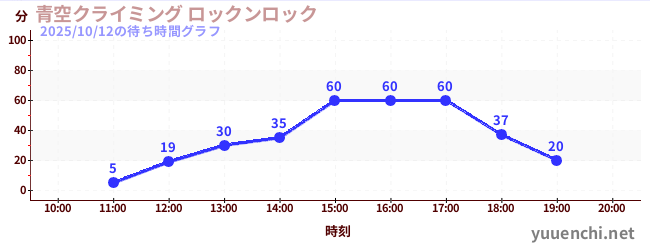 2025/10/12の待ち時間グラフ (青空クライミング ロックンロック)
