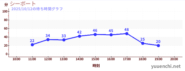 2025/10/12の待ち時間グラフ (シーパラダイスタワー)