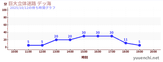 2025/10/12の待ち時間グラフ (巨大立体迷路 デッ海)