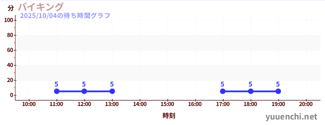 2025/10/04の待ち時間グラフ (バイキング)