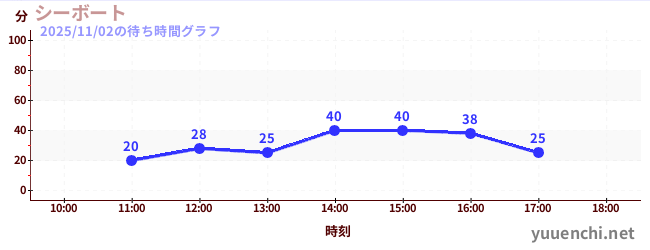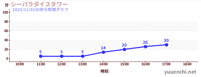 2025/11/02の待ち時間グラフ (シーパラダイスタワー)
