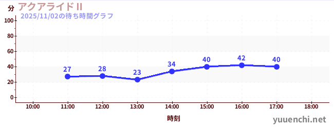 2025/11/02の待ち時間グラフ (アクアライドⅡ)