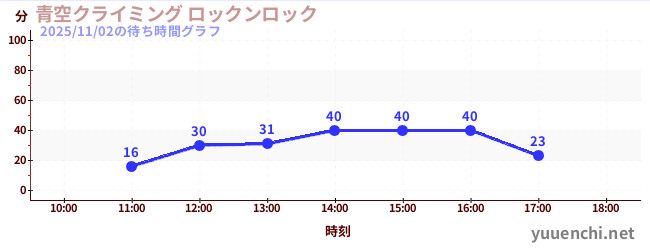 2025/11/02の待ち時間グラフ (青空クライミング ロックンロック)