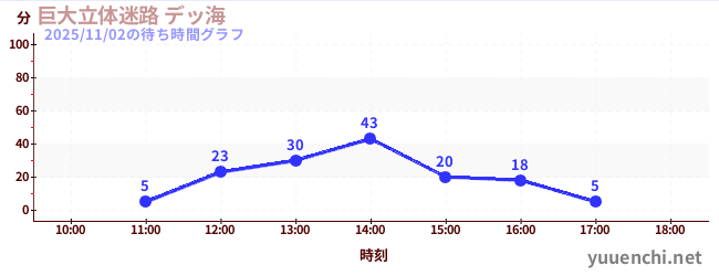 2025/11/02の待ち時間グラフ (巨大立体迷路 デッ海)