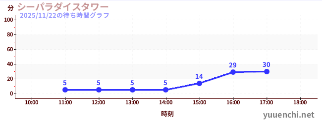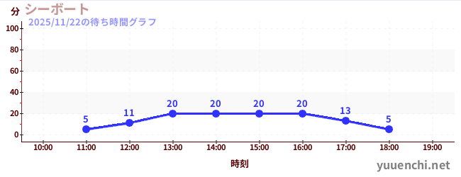 2025/11/22の待ち時間グラフ (シーパラダイスタワー)