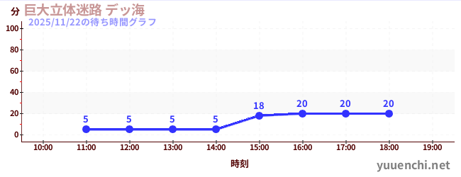 2025/11/22の待ち時間グラフ (巨大立体迷路 デッ海)