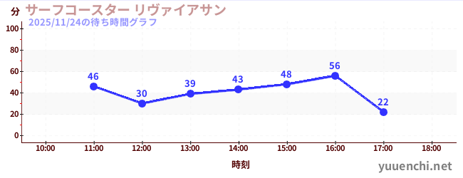 2025/11/24の待ち時間グラフ (サーフコースター リヴァイアサン)