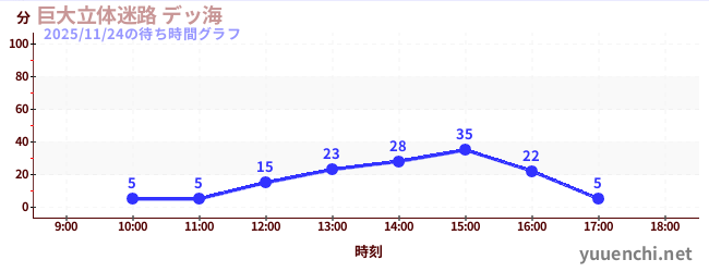 2025/11/24の待ち時間グラフ (巨大立体迷路 デッ海)