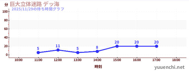 2025/11/29の待ち時間グラフ (巨大立体迷路 デッ海)