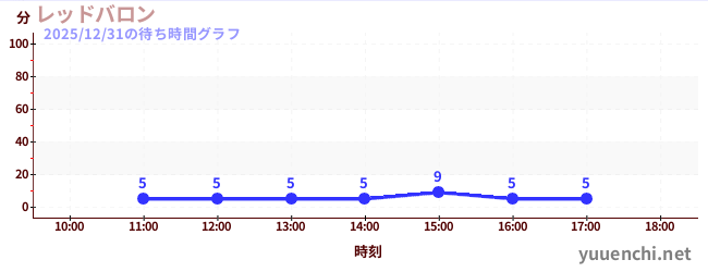 2025/12/31の待ち時間グラフ (レッドバロン)