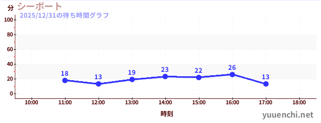 2025/12/31の待ち時間グラフ (シーパラダイスタワー)