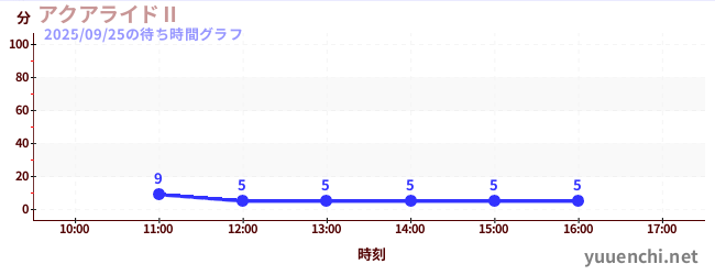 2025/09/25の待ち時間グラフ (アクアライドⅡ)