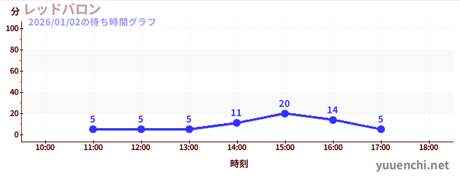 2026/01/02の待ち時間グラフ (レッドバロン)