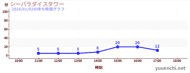 2026/01/02の待ち時間グラフ (シーパラダイスタワー)