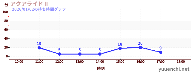 2026/01/02の待ち時間グラフ (アクアライドⅡ)